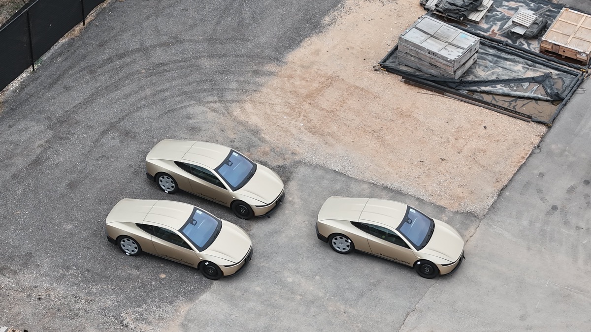 The discovery was made by drone pilot Joe Tegtmeyer, who captured multiple units of the two-seat electric vehicle. These models appear to be the final production design, distinct from earlier prototypes that sometimes featured temporary steering wheels for engineering purposes.